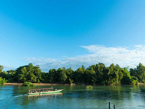 Le matin, embarquement à bord d'une longue barge traditionnelle pour commencer la navigation sur le Mékong. D'une durée de 6 heures environ, la navigation débute à travers la vaste plaine fertile de Vientiane, puis offre des paysages spectaculaires de jungle et de montagnes au milieu desquels s'écoule un Mékong tumultueux. Déjeuner à bord du bateau traditionnel. Dans l'après-midi, arrivée à Pak Lai, ancienne ville de style colonial administrée par les Français. Sa position en a fait une escale privilégiée pour les petits bateaux naviguant sur le Mékong. Son front de rivière et son marché sont très animés - Puis transfert au port.